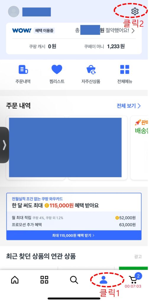 - [마이쿠팡] 메뉴로 들어갑니다.